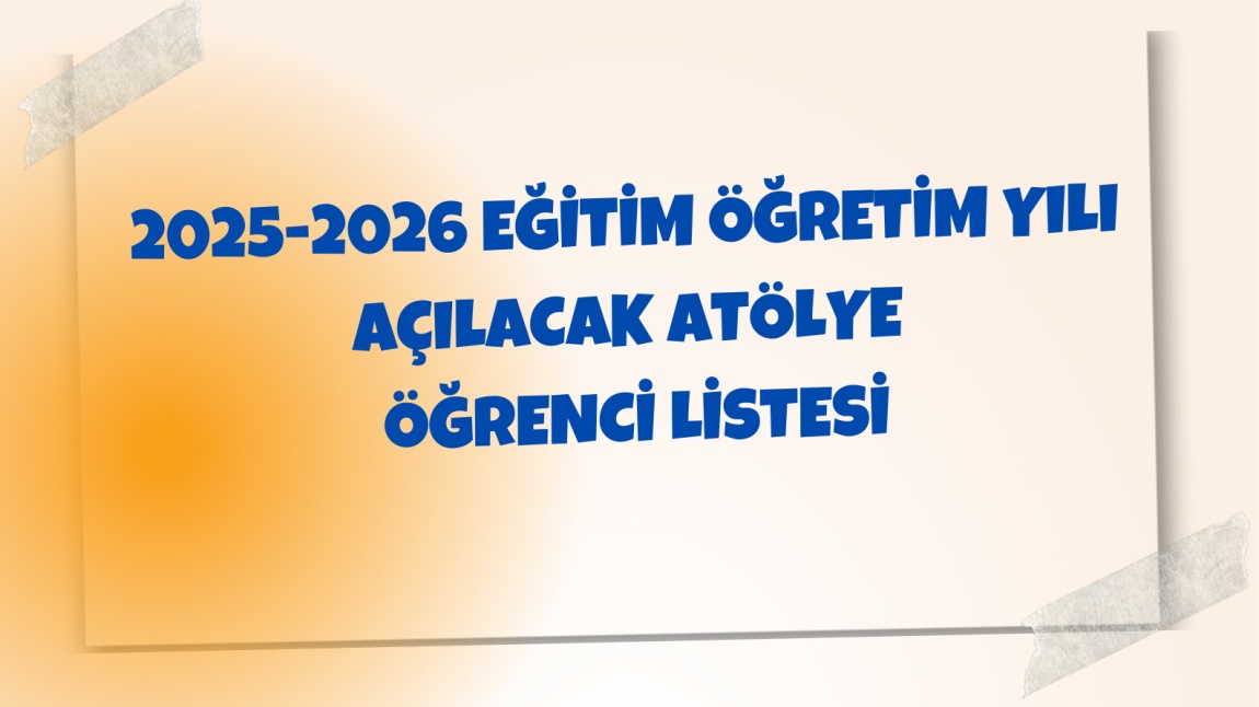 2025-2026 EĞİTİM ÖĞRETİM YILI AÇILACAK ATÖLYE VE ÖĞRENCİ LİSTELERİ AÇIKLANMIŞTIR